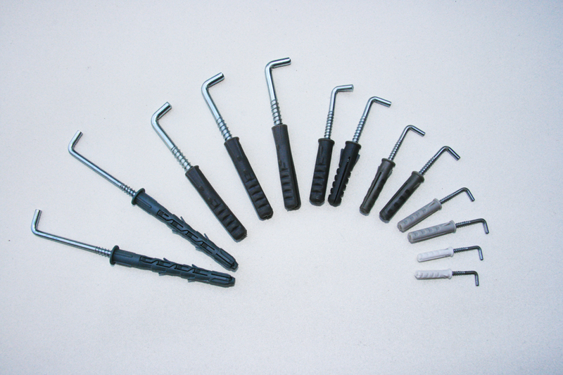 – kołki rozporowe z hakami kątowymi i sufitowymi oraz huśtawkowymi